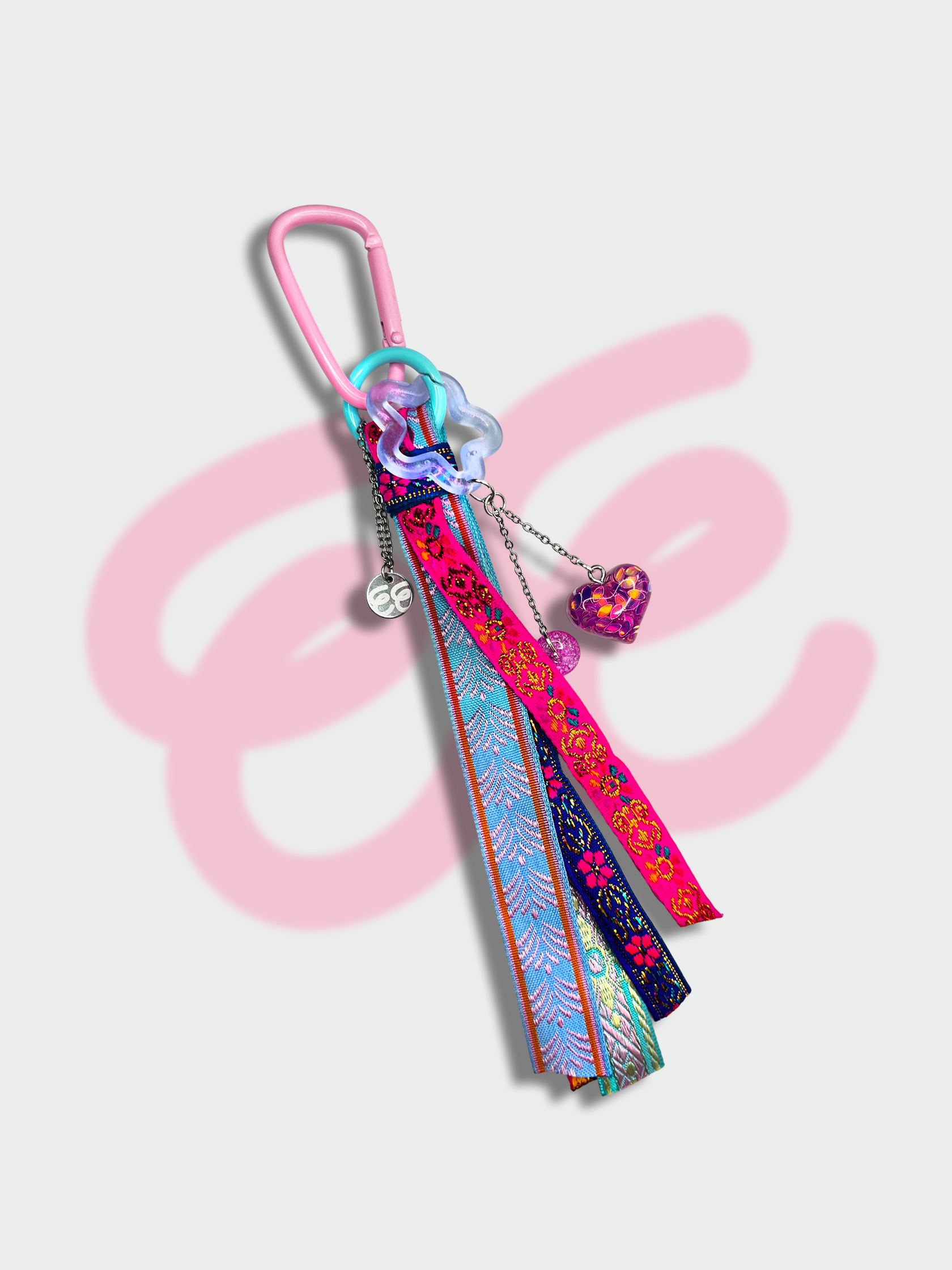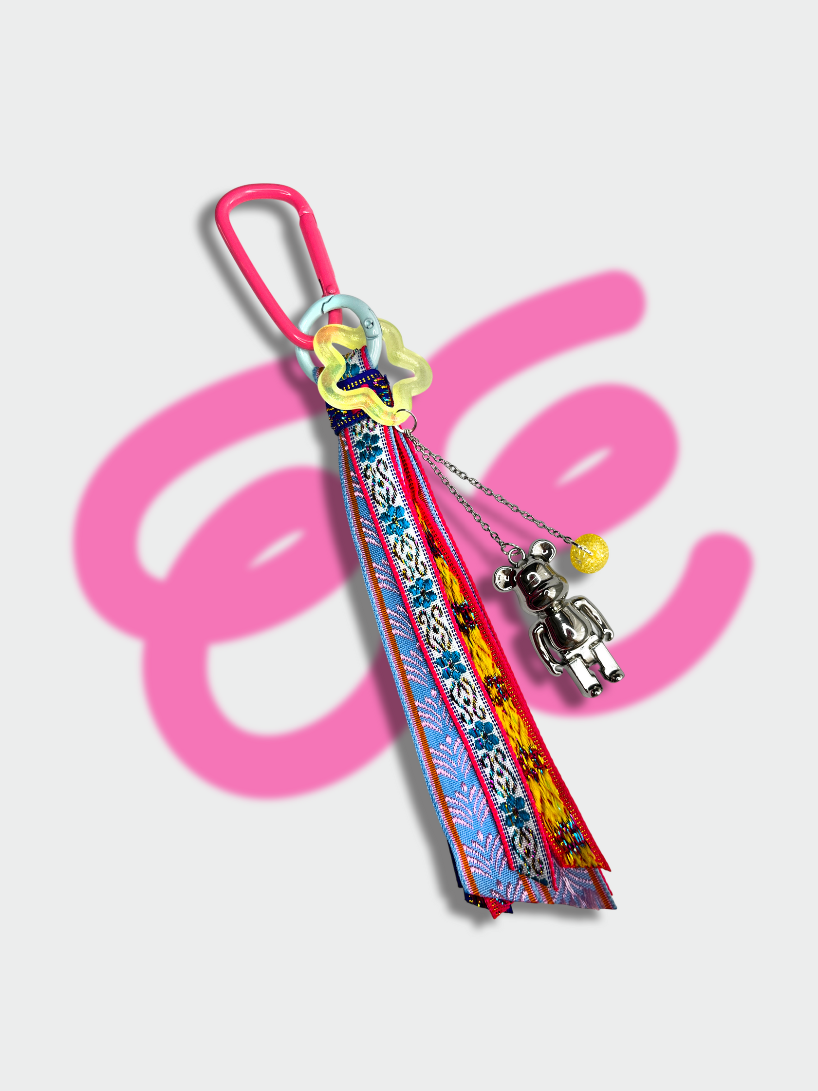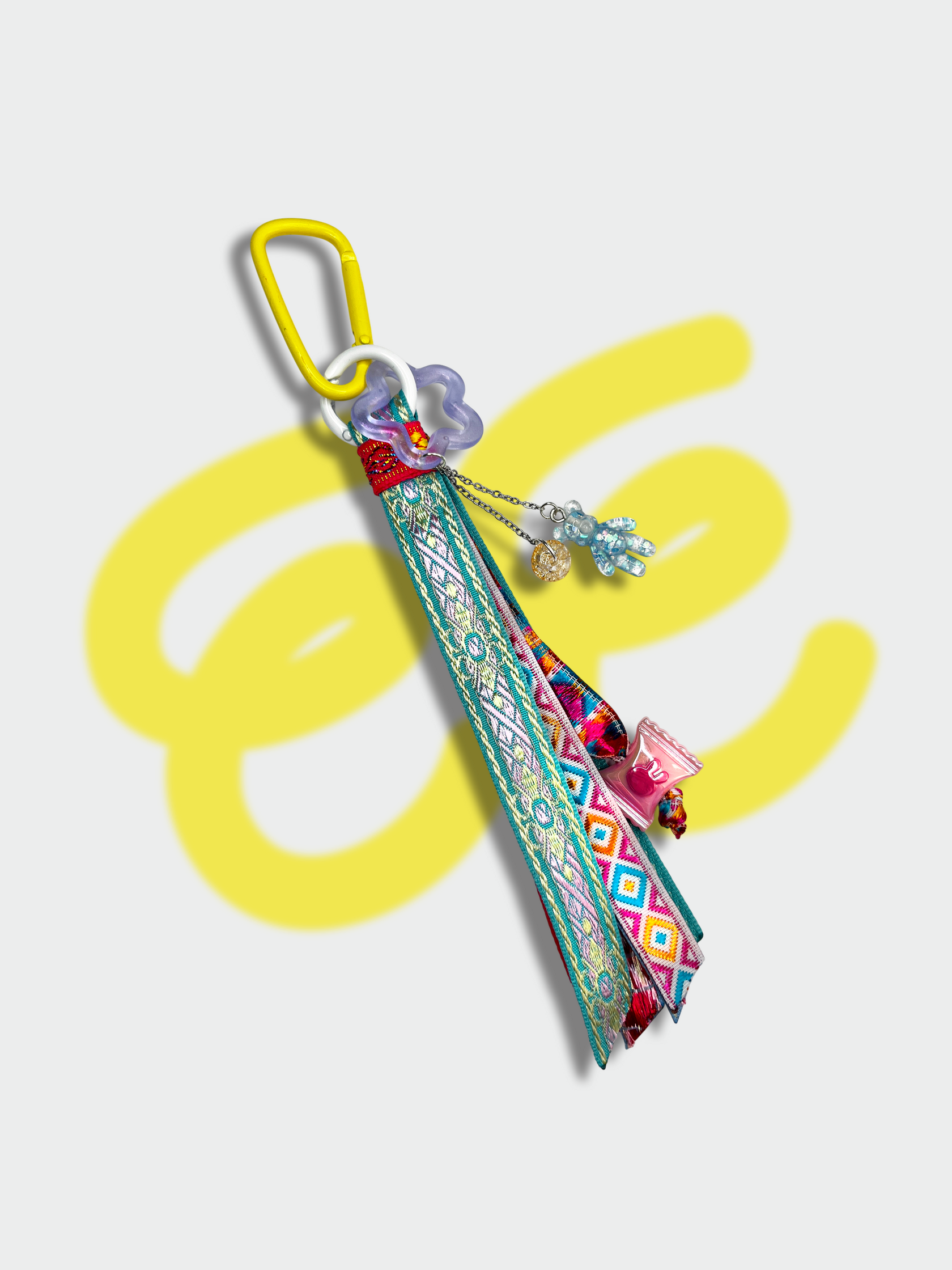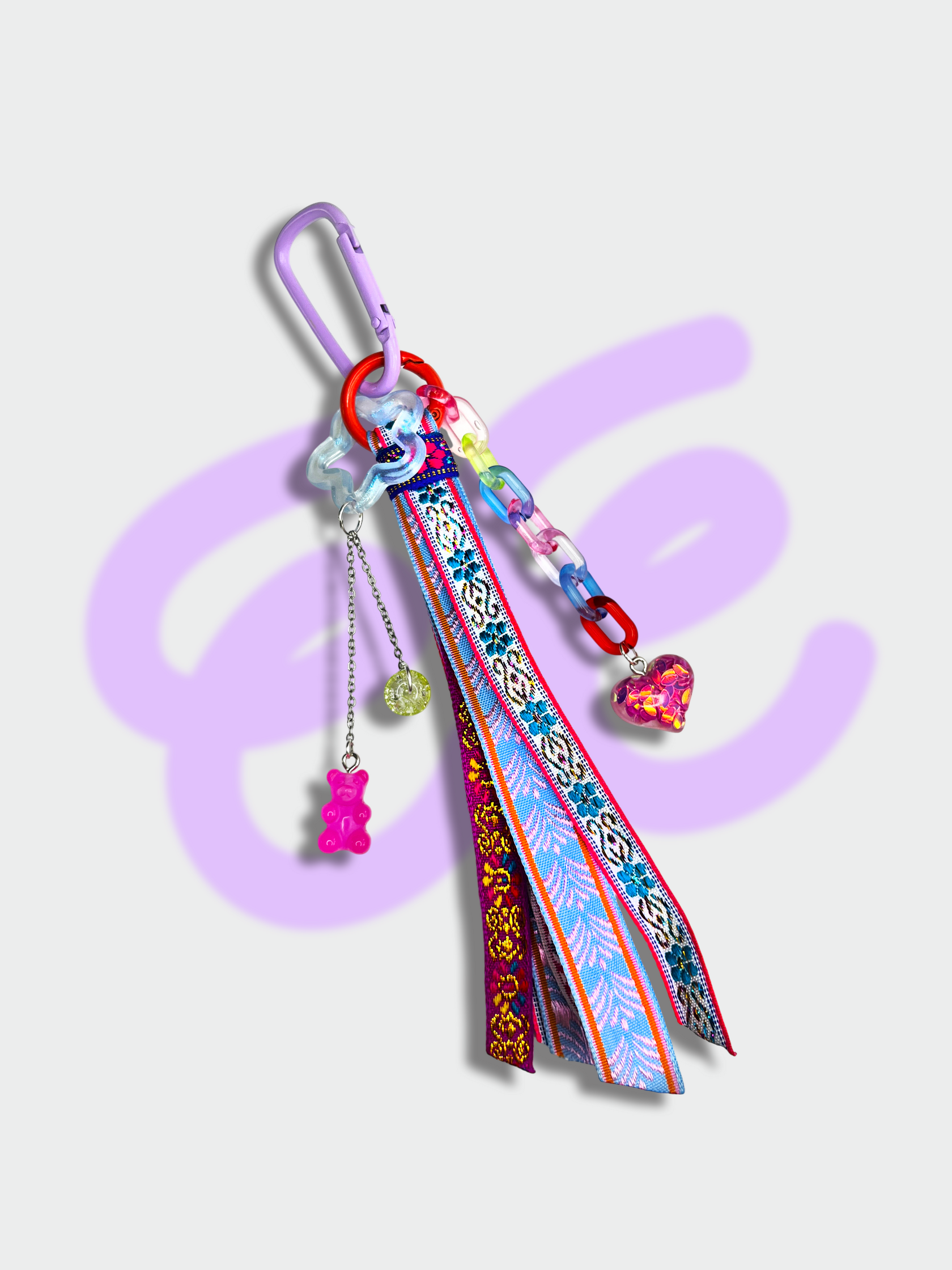 В твоих руках — не просто брелок, а главный акцент для скучнейшей связки ключей, сумки или рюкзака. Яркие жаккардовые ленты, переливающиеся бусины и звонкие цепочки: весь этот карнавал деталей заканчивается стильным металлическим карабином, который цепляется за что угодно.